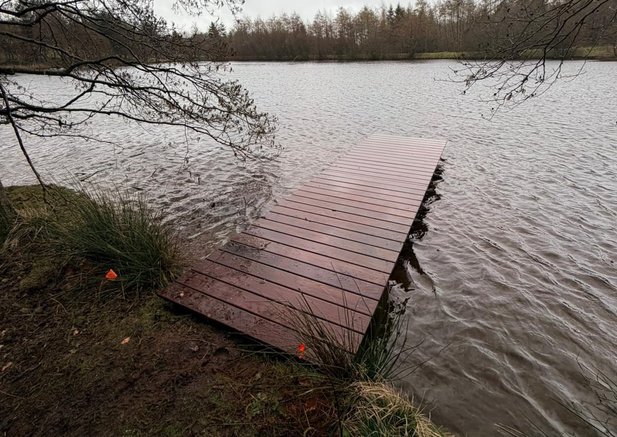 In October 2025, we built two of the jetties, then we built the other two in March 2026. For each jetty, to start, we built a supporting framework, made from 60mm diameter galvanised tubes. We then constructed synthetic lumber sub-frames on top of that and finished with the Abodo decking, with the completed jetties fitting nicely into the surrounding area.